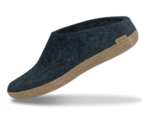 Glerups Unisex Felt Wool Slip-on Slipper with Leather Sole - Denim